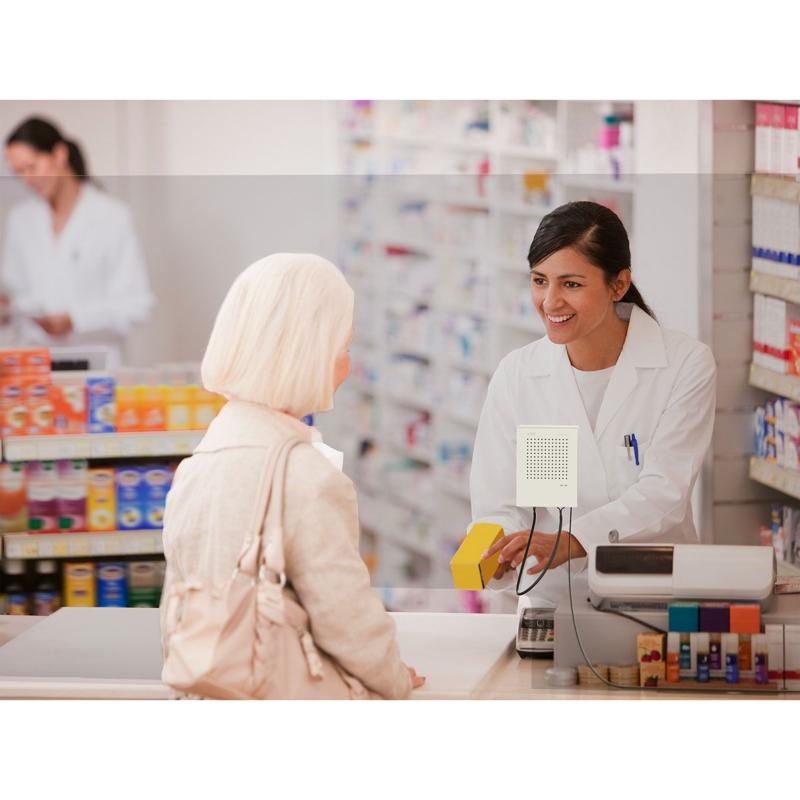Even if additional hearing barriers (such as face masks) are in use, the microphone units have AEC (Acoustic Echo Cancellation) and noise reduction to supress background noise and enhance the clarity of the communication taking place. This offers clear speech intelligibility in any environment. The VoiceBridge is perfect for any situation where face to face communication is required, but you need to ensure that the safety of both the staff and the customers is guaranteed.